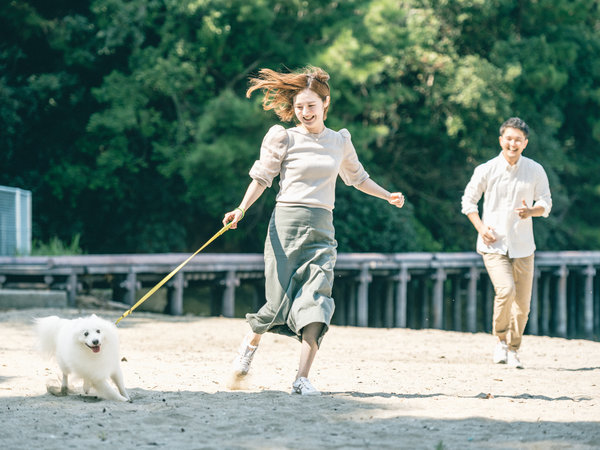 いつでもどこでもペットと一緒♪館内はケージなしで同伴OK!天草海の幸づくしのお食事は、海の見えるテラスでペットと一緒に楽しめます。宿泊者専用ドッグランやペット専用温泉もあり、人も愛犬も楽しさ満点