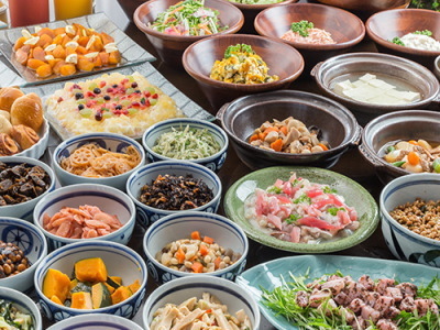 | 外観 | 中央館和洋室からの眺望 | 料理イメージ | 朝食バイキング |